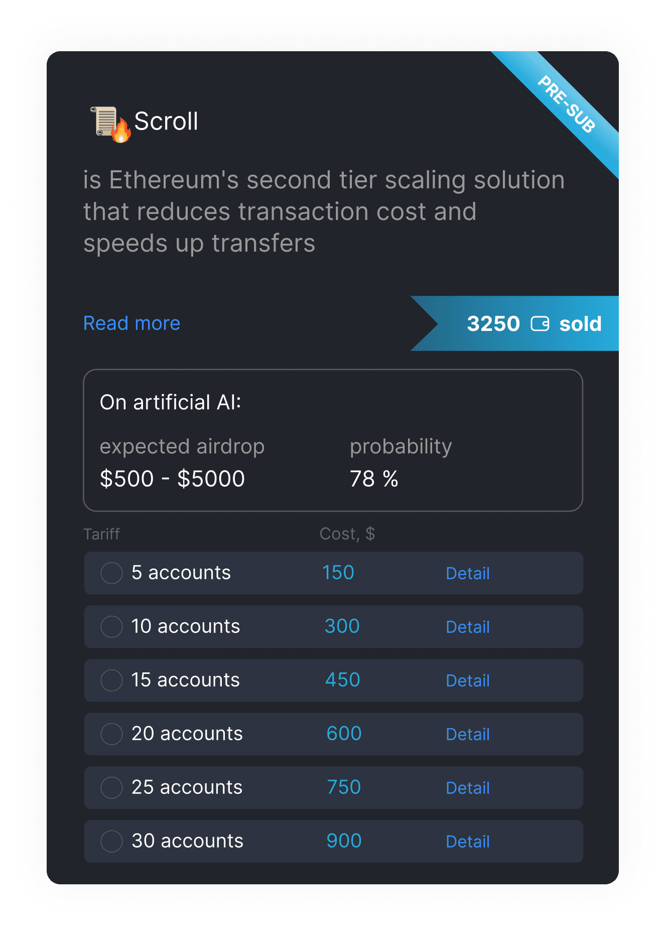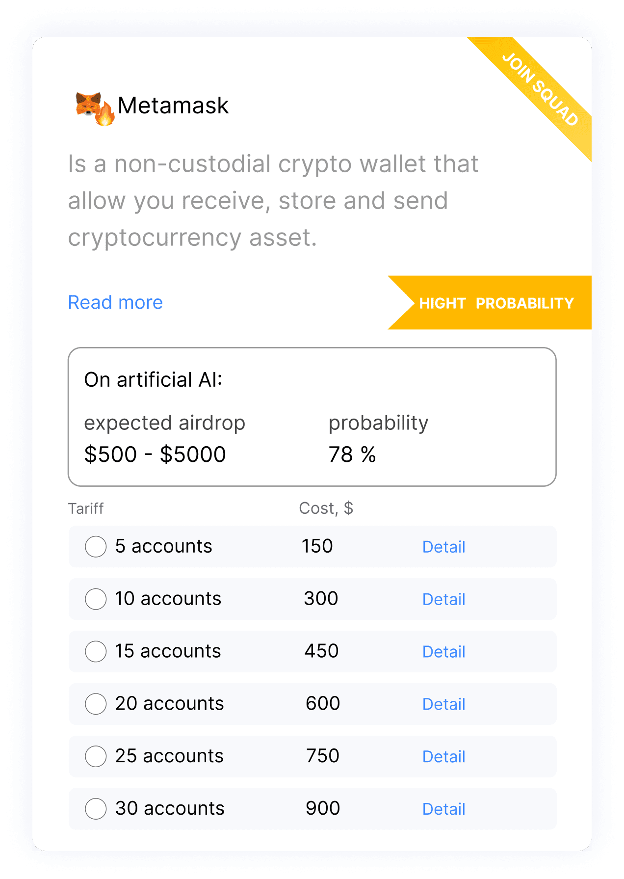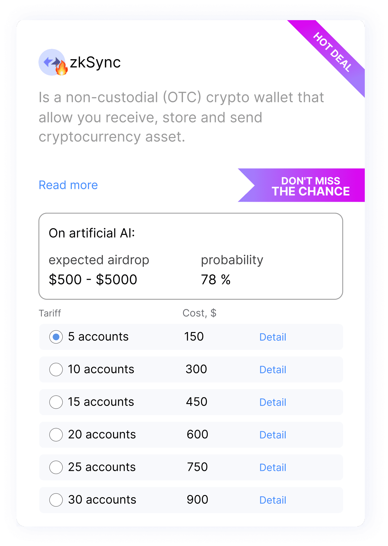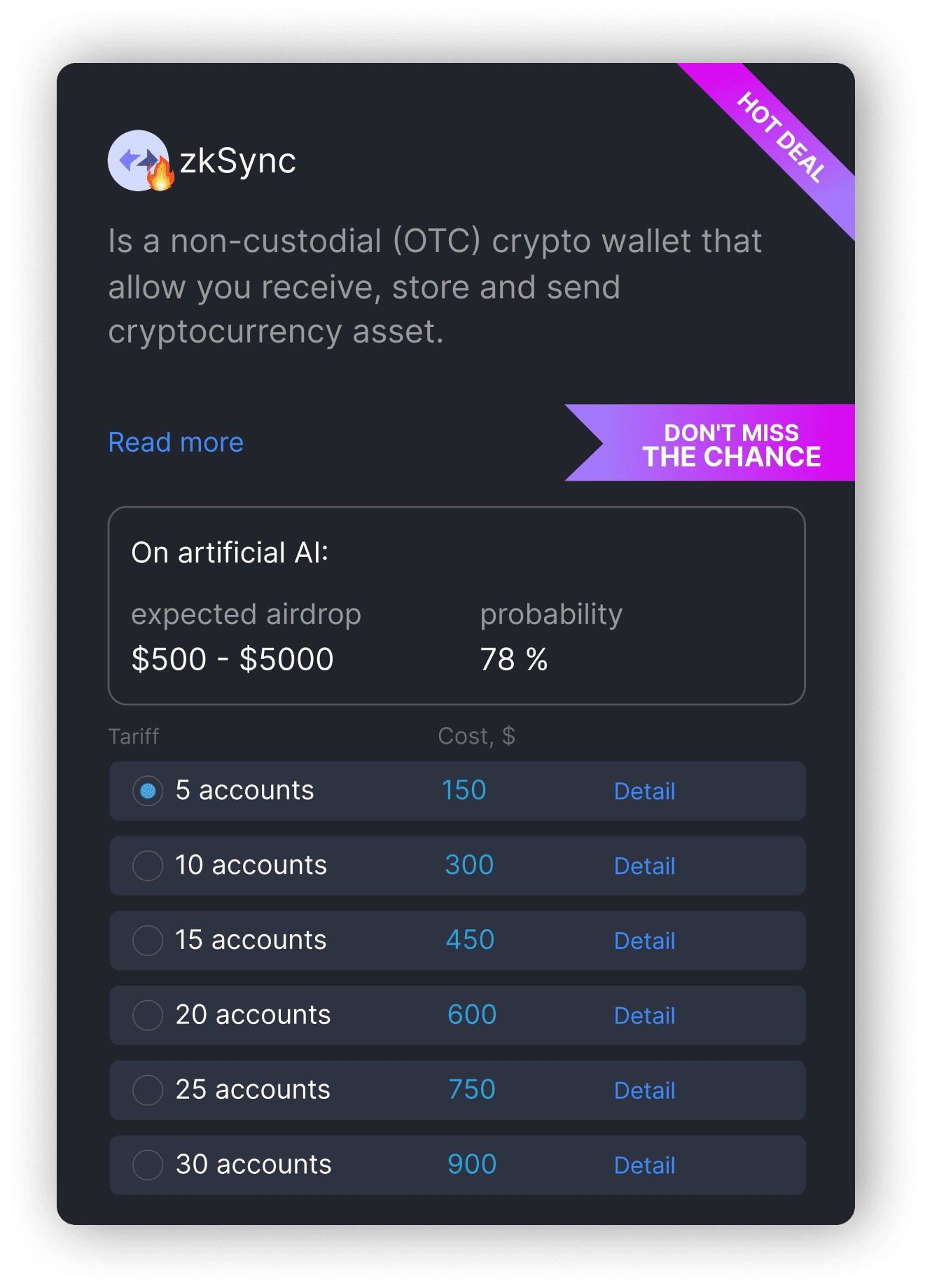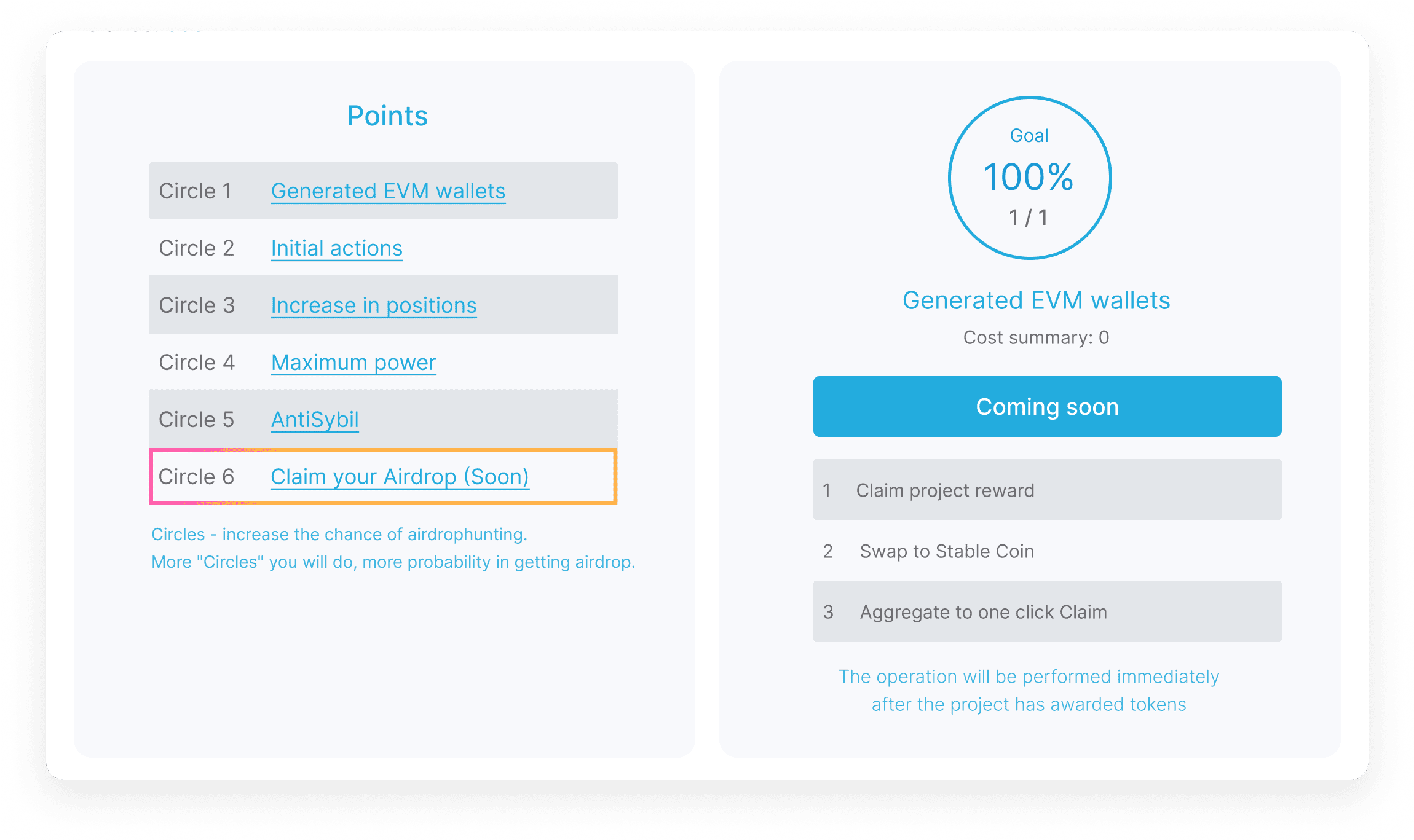 AI AirdropHunter Tired of KYC, being a sybil and not receiving airdrops? Especially for you, with the help of breakthrough AI technologies, we have developed a system for selecting cards and knocking out activities, which increases the likelihood of receiving an airdrop on a new bullish cycle!