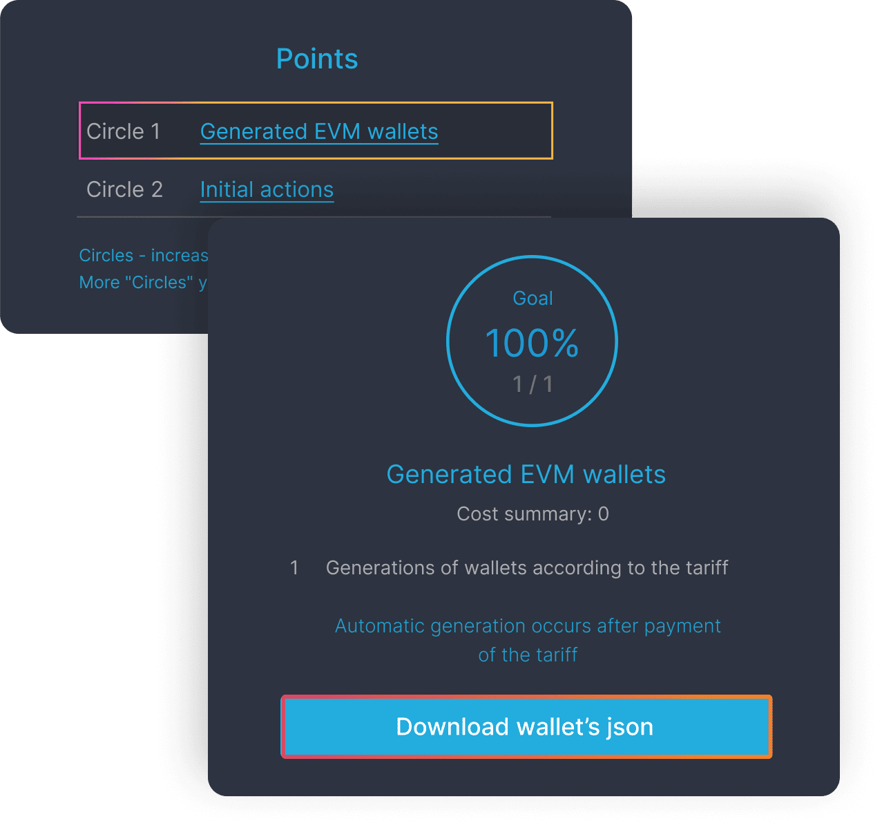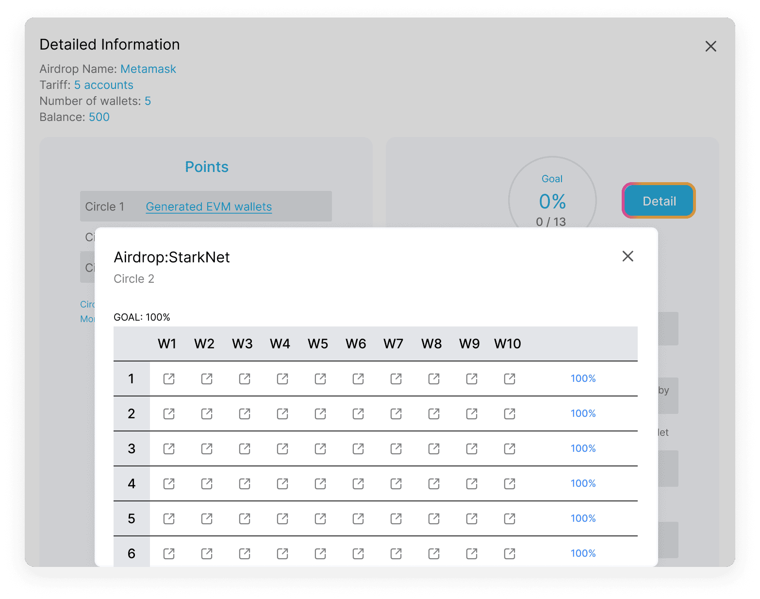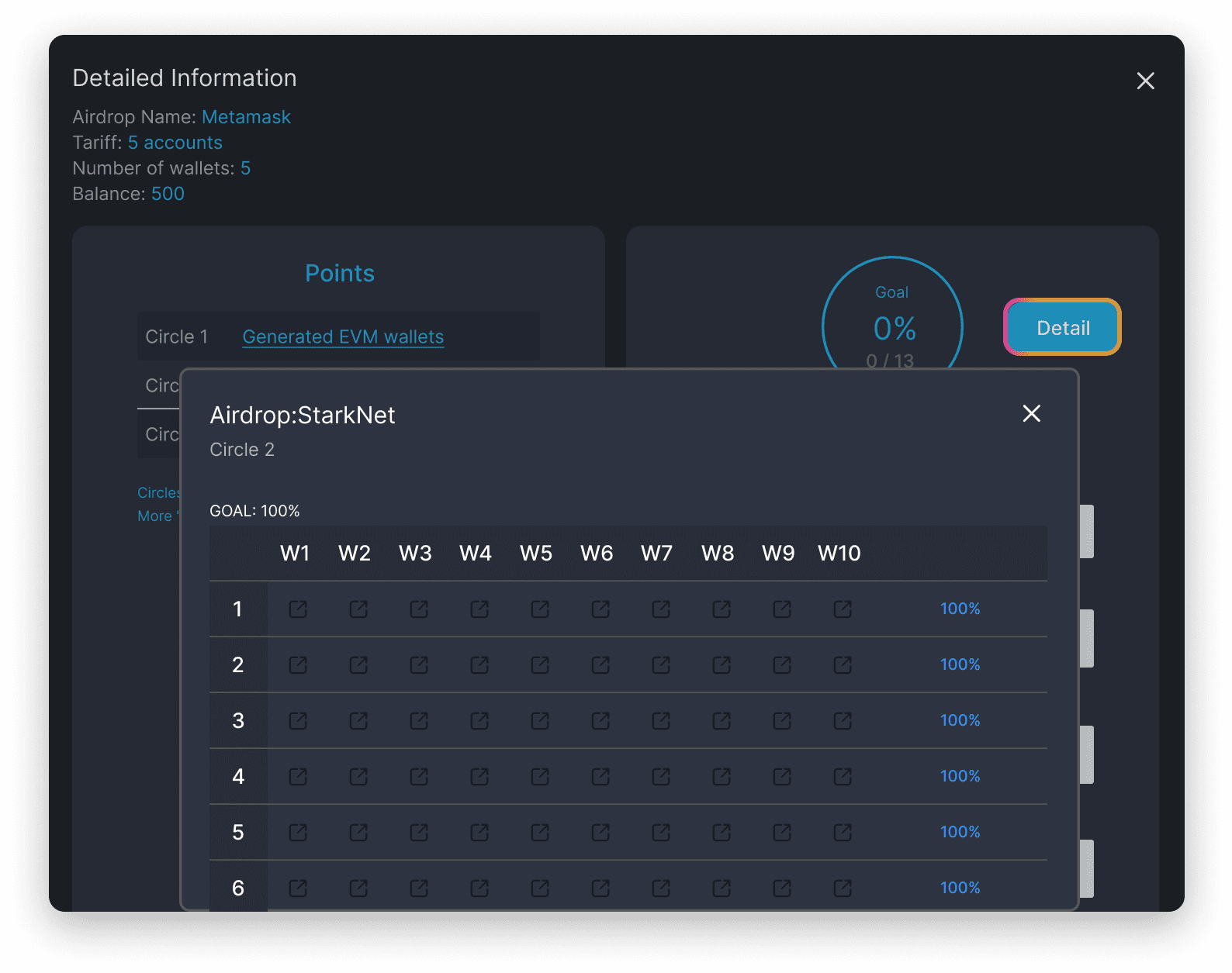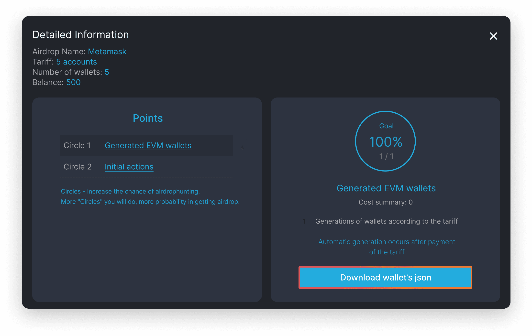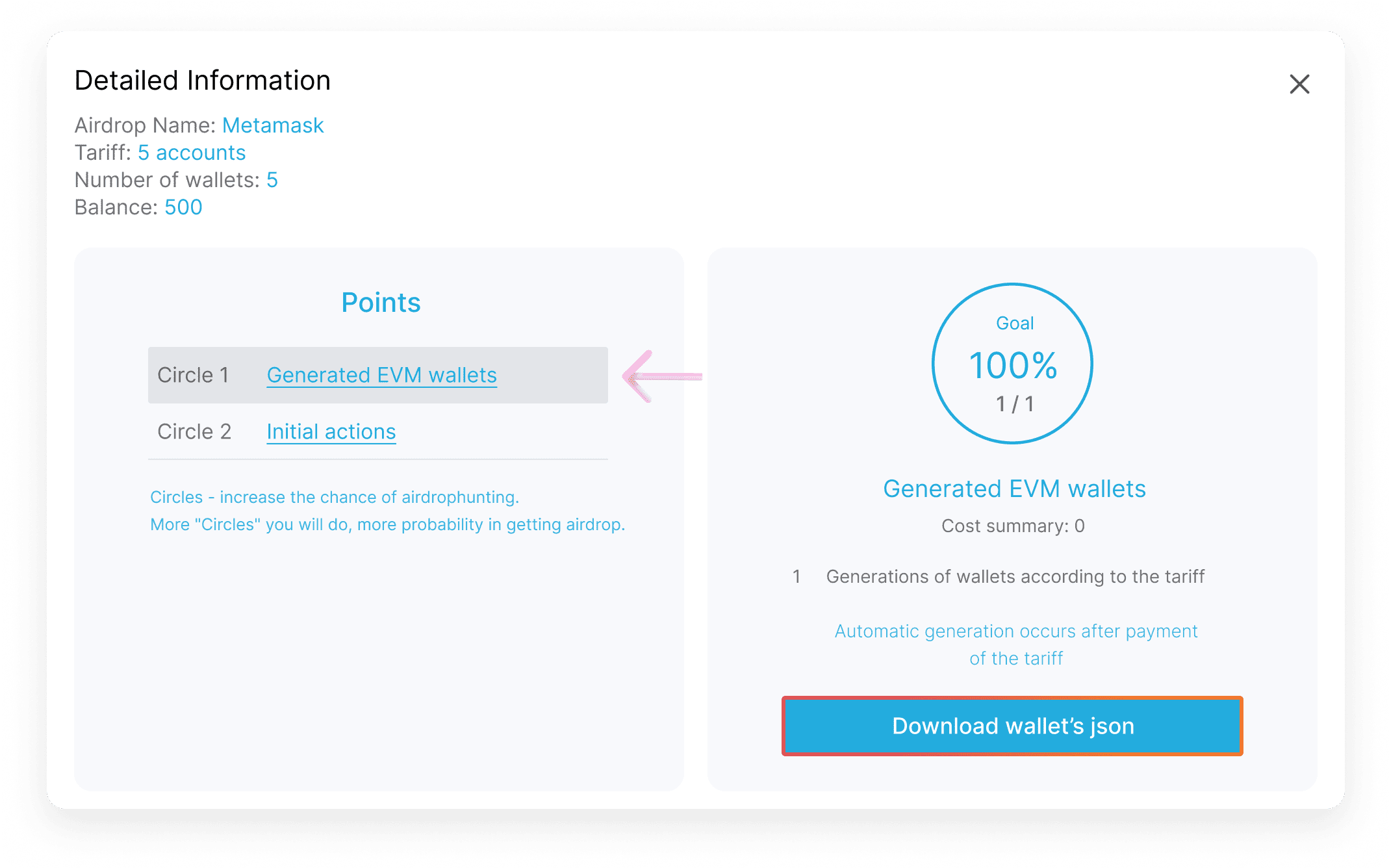 7. Click on «Details» => «Circle1» => «Download wallet's json»